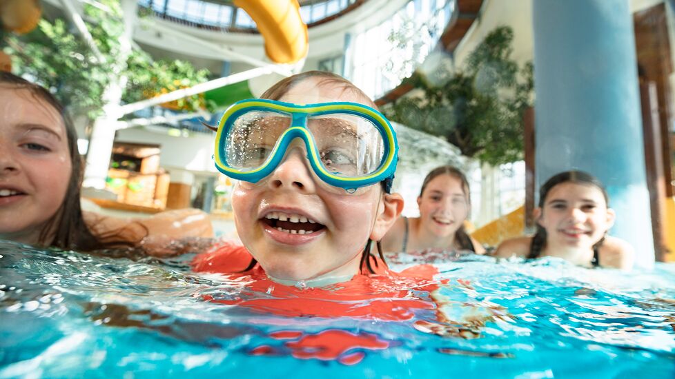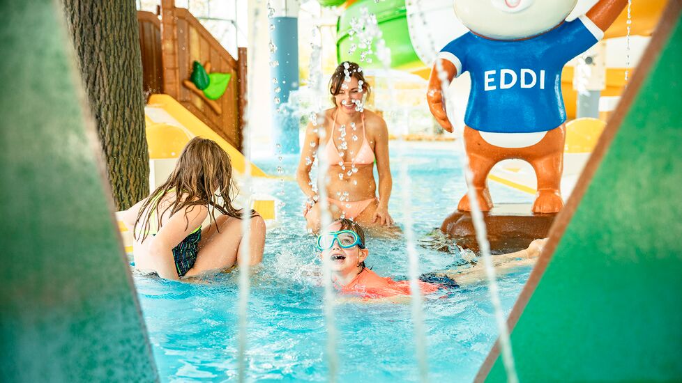 Erfrischende Badeerlebnisse mit Pools im Innen- und Außenbereich, großzügigen und liebevoll gestalteten Liegeplätzen für jede Menge entspannende Wohlfühlmomente. Gemeinsam mit den beiden Maskottchen Eddi und Ewi, dürfen sich alle kleinen Gäste auf eine aufregende Erlebnis-Rutsche sowie ein Wasserspielplatz freuen. Wir freuen uns auf Ihren Besuch.