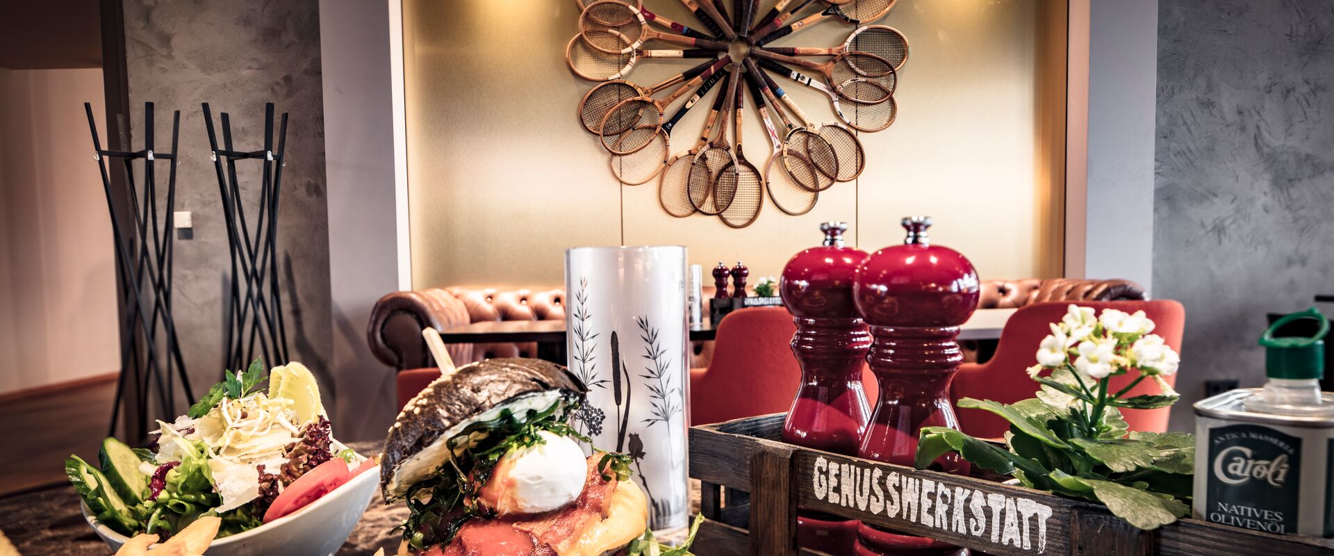 Erleben Sie in der Genusswerkstatt mit Ihren Freunden und Ihrer Familie eine kulinarische Vielfalt mit frischen, teilweise regional angebauten Zutaten in einer gemütlichen und modernen Einrichtung.