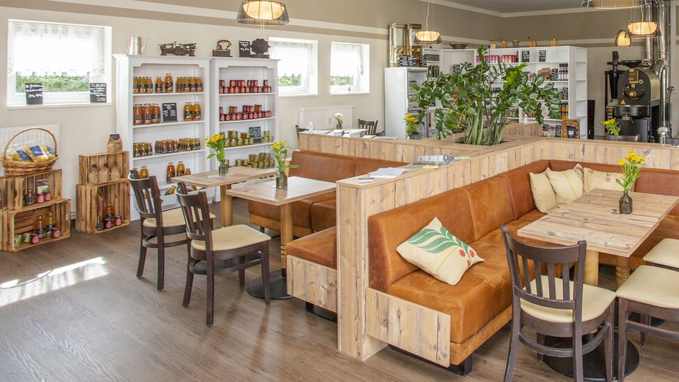 Zudem bietet die Rösterei eine Vielzahl an hausgemachten Produkten an – vom eigenen SCHLOSS-Apfelsaft über Konfitüren aus dem Obst der resorteigenen Landwirtschaft bis hin zu den Wildspezialitäten aus eigener Jagd. Außerdem werden ausgewählte Produkte regionaler Partner vertrieben – etwa Fisch der Müritzfischer oder Müritz Gin, dessen Wacholderbeeren aus dem nahegelegenen Müritz-Nationalpark stammen. Für alle, denen die Entscheidung bei der umfangreichen Produktvielfalt schwerfällt, gibt es auch verschiedene Präsentkörbe mit ausgewählten Köstlichkeiten im Angebot.