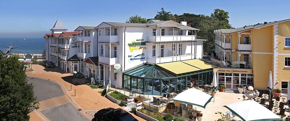 Das Akzent Waldhotel ist das erste anerkannte Kneippkurhotel auf Rügen. Zum Hotel gehört das Restaurant "Friesenstube" für feinste pommersche Kochkunst und ein modernes Kur- und Gesundheitszentrum, das auch für krankenkassenzugelassene Kuren ausgerichtet ist. Alle Zimmer und Appartements sind geräumig und verfügen über TV, Telefon, Radio und Minibar. Spezielle Arrangements, unter anderem Rügener Heilkreideanwendungen, Kneipp-, Venen- und Fastenwanderwochen, werden angeboten. Für Tagungen und Veranstaltungen stehen ein Seminarraum und eine Mehrzweckhalle mit moderner Tagungstechnik zur Verfügung.