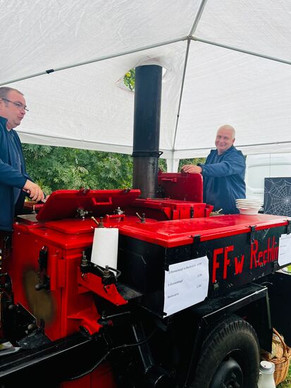 Für das leibliche Wohl sorgt die Rechliner Feuerwehr mit leckerem Erbseneintopf aus der Gulaschkanone. Warme und kalte Getränke halten wir natürlich auch bereit.