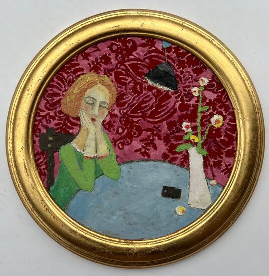 Ausgebildet in Restaurierung an der Hochschule für Bildende Künste in Dresden - nach Studien der Theologie und Philosophie - verbindet sie geistige Tiefe mit handwerklicher Präzision. Ganz bewusst greift sie auf historische Maltechniken zurück und nutzt für ihre kleinen und großen Tafelbilder Pigmente, Leime und Bindemittel, die seit Jahrhunderten Geschichten erzählen. Besonders charakteristisch ist ihre Wahl des Malgrundes. Sie sammelt, was andere übersehen oder wegwerfen: Tapetenreste, ausrangierte Möbelstücke, Holzrahmen, Textilien. Fundstücke vom Straßenrand oder Sperrmüll werden zu poetischen Bildträgern, mit sichtbaren Zeichen gelebter Zeit.