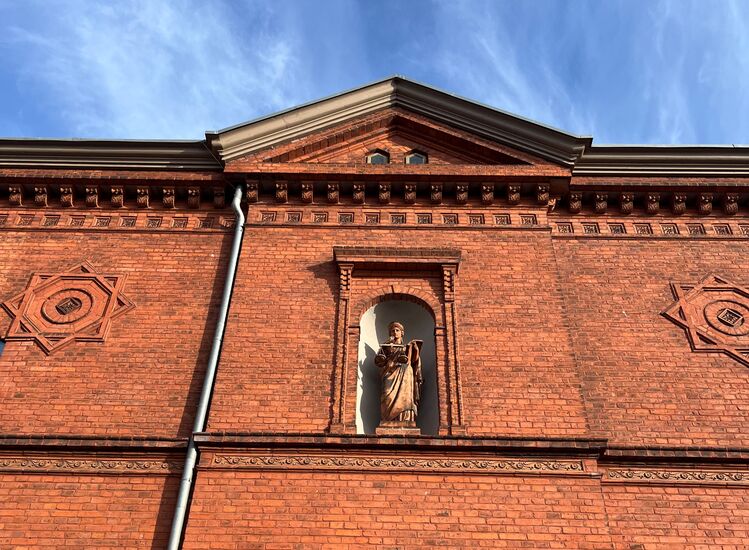 Zusammen mit dem Alten Markt, der Randbebauung und dem ziegelroten Amtsgericht bildet das weit zurückgesetzte Gebäude den gestalterischen Mittelpunkt des historischen Stadtkernes.