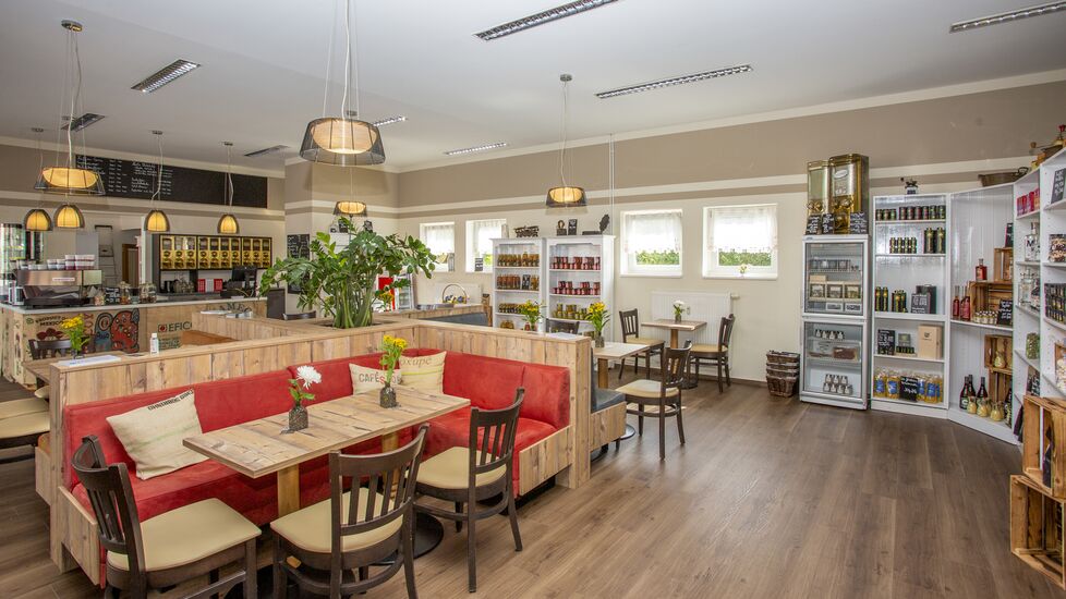 Genießen Sie frisch gebrühten Kaffee, Kaffeespezialitäten, hausgemachtes Eis, frische Backwaren & viele weitere regionale Delikatessen.